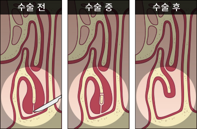 비후가 심한 하비갑개의 내부를 부분적으로 절제하여 부피를 줄여줍니다. 코막힘에 특히 효과적입니다. 비중격만곡증이 동반된 경우 함께 수술이 필요합니다.
