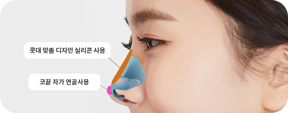코끝은 자가연골, 콧대는 개인 맞춤 디자인 보형물로 안전하고 얼굴 비율에 어울리는 예쁜 코라인 완성